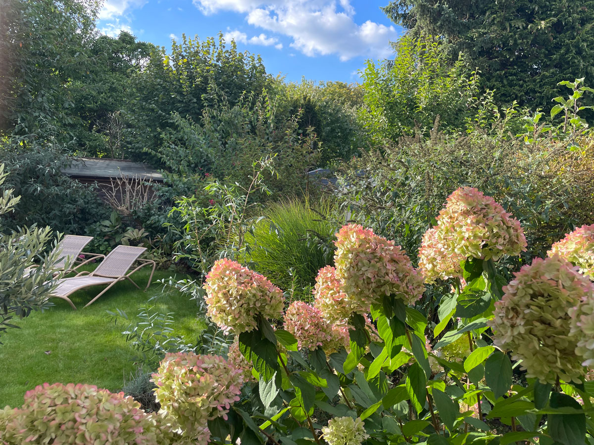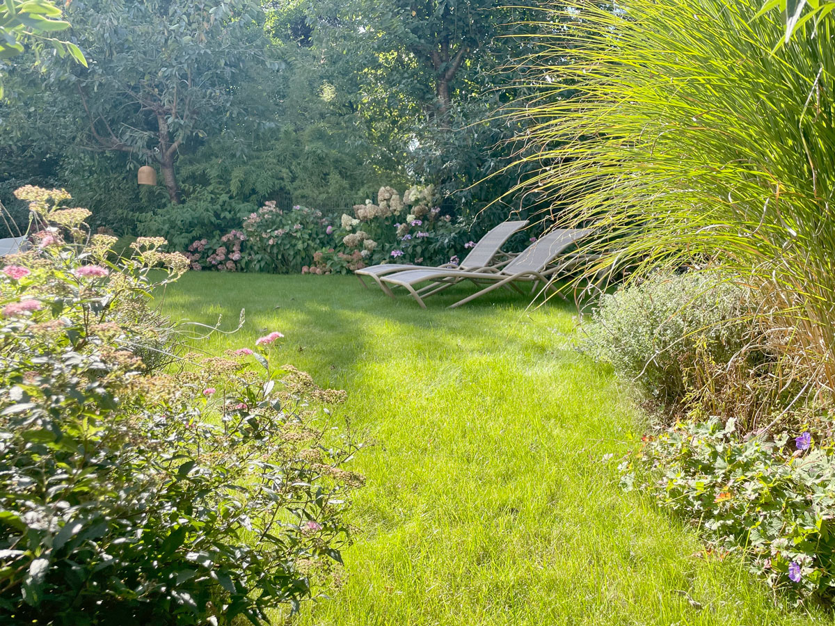 Die wichtigste Aufgabe für die Gartenplanung war ein stimmiges Bepflanzungskonzept, welches Sichtschutz und jahreszeitliche Abwechslung bietet und die Terrasse und dem Rasen in der Mitte des Gartens in eine grüne Oase verwandelt.